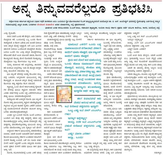 ಎಂಥಾ ಸ್ಥಿತಿ ಬಂದಿದೆ ನೋಡಿ. ಹಿಂದೆ ಬರಗಾಲ ಬಂದಾಗ ಜನ ತಾವು ಹೆತ್ತ ಮಕ್ಕಳನ್ನೇ ಮಾರಿ ಭತ್ತ ಕೊಂಡುಕೊಳ್ತಿದ್ದರು ಅನ್ನೋ ಮಾತು ನೆನಪಾಗ್ತದೆ. ಹೆತ್ತ ಮಕ್ಕಳನ್ನು ಮಾರಿಕೊಳ್ಳೋದಕ್ಕೂ ಭೂಮಿಯ ಮಣ್ಣು ಬಗೆದು ಮಾರೋದಕ್ಕೂ ಏನು ವ್ಯತ್ಯಾಸ ಇದೆ ಹೇಳಿ?