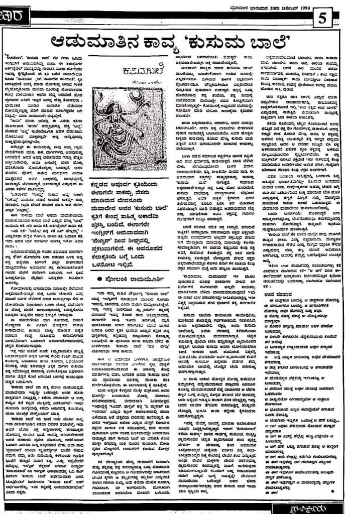 [ದೇವನೂರ ಮಹಾದೇವ ಅವರ ಕುಸುಮಬಾಲೆ ಕಾದಂಬರಿ ಕುರಿತು ಪೋಲಂಕಿ ರಾಮಮೂರ್ತಿ ಅವರು 30.12.1990ರಂದು ಪ್ರಜಾವಾಣಿಗೆ ಬರೆದ ವಿಮರ್ಶೆ ನಮ್ಮ ಮರು ಓದಿಗಾಗಿ]